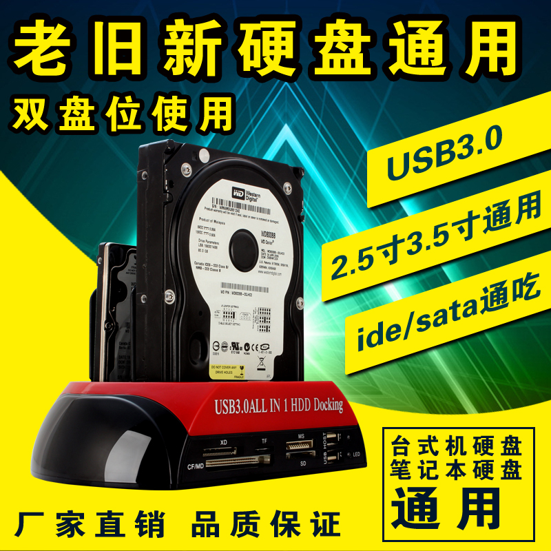 羽存3.5/2.5英寸并口串口机械IDE固态sata外接usb3.0双盘位硬盘盒