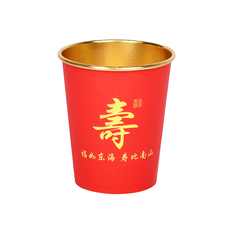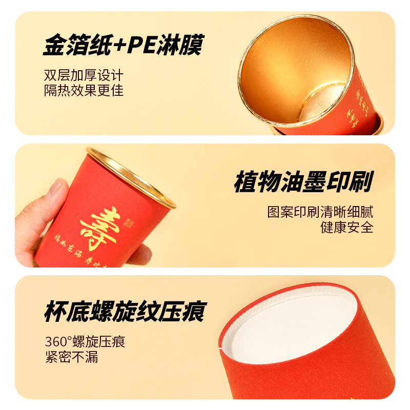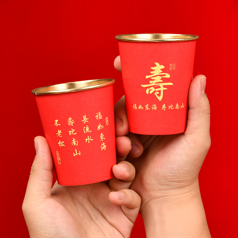过寿老人生日一次性金箔纸杯家用喜庆寿宴水杯防烫大红色酒席餐具