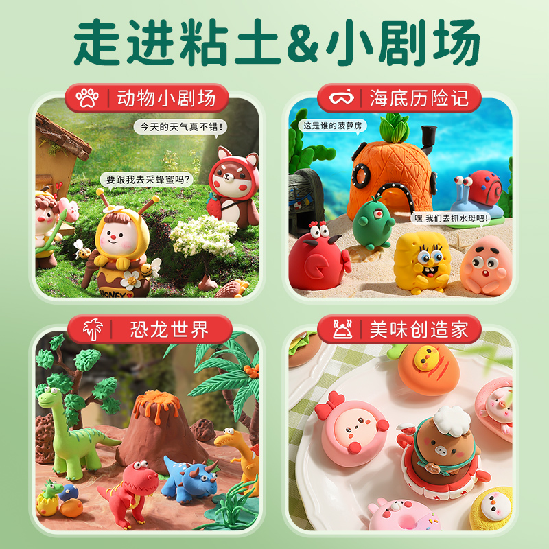 面粉彩泥无毒儿童玩具国潮汉堡橡皮泥制作模具超轻粘土幼儿园礼物