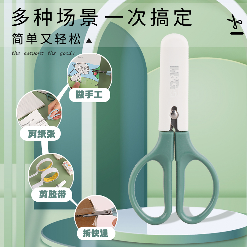 晨光剪刀莫兰迪色带安全护套幼儿园小学生用手工剪纸DIY美工剪刀便携式手工剪刀小号随身携带省力不伤手剪子