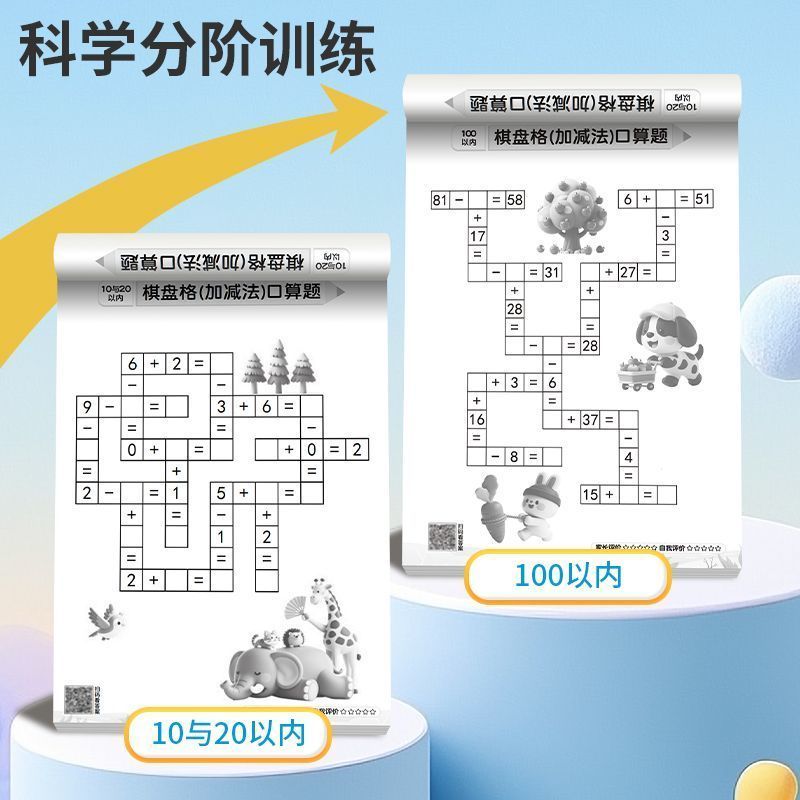 数学100以内趣味棋盘格加减法口算题数独游戏训练专注专项练习册