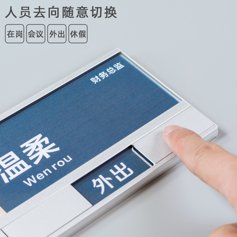 工位牌铝合金定制可更换员工状态去向牌办公桌悬挂式座位牌粘贴牌