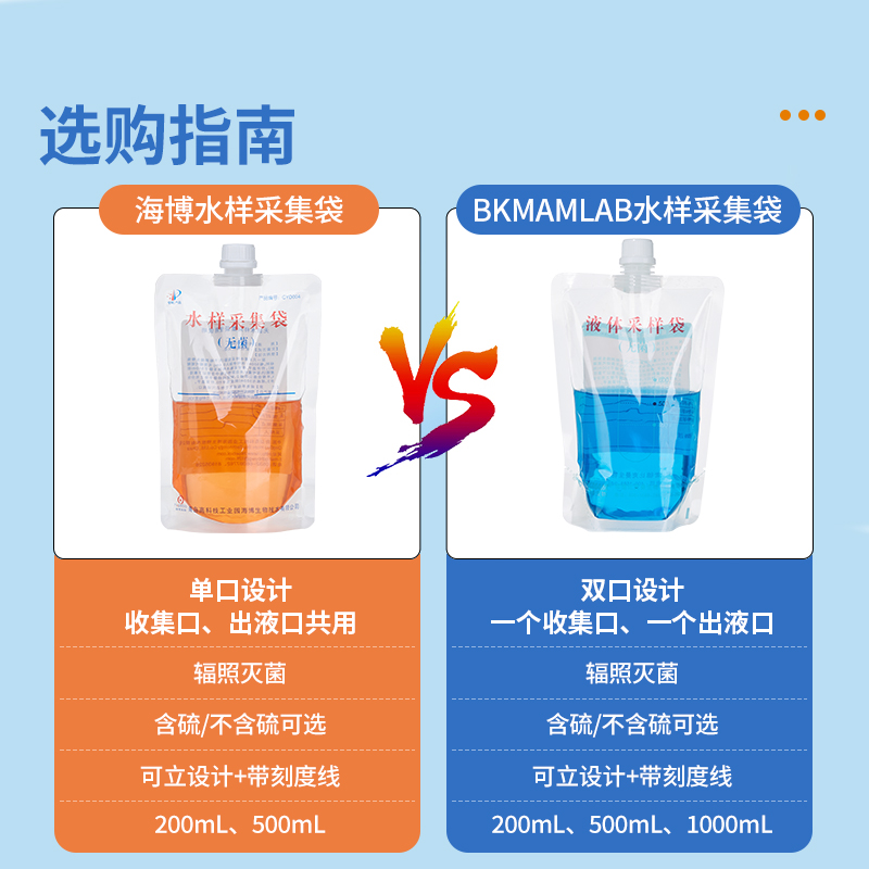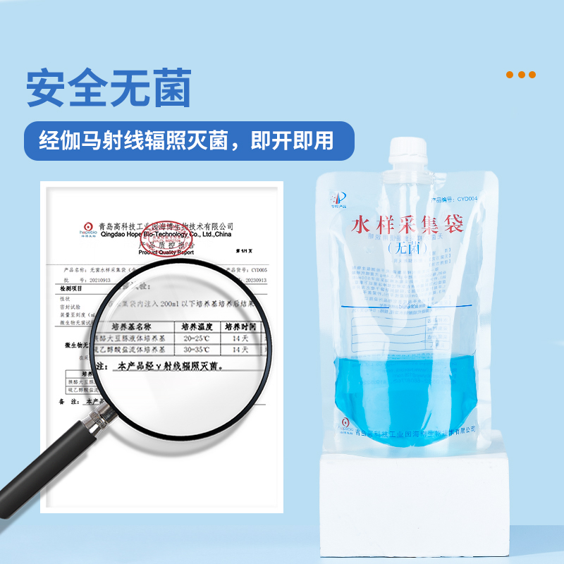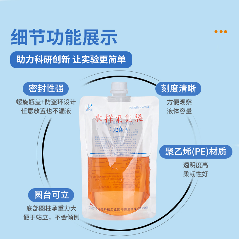 青岛海博无菌水样采集袋含硫圆底可立式水质取样袋采水袋