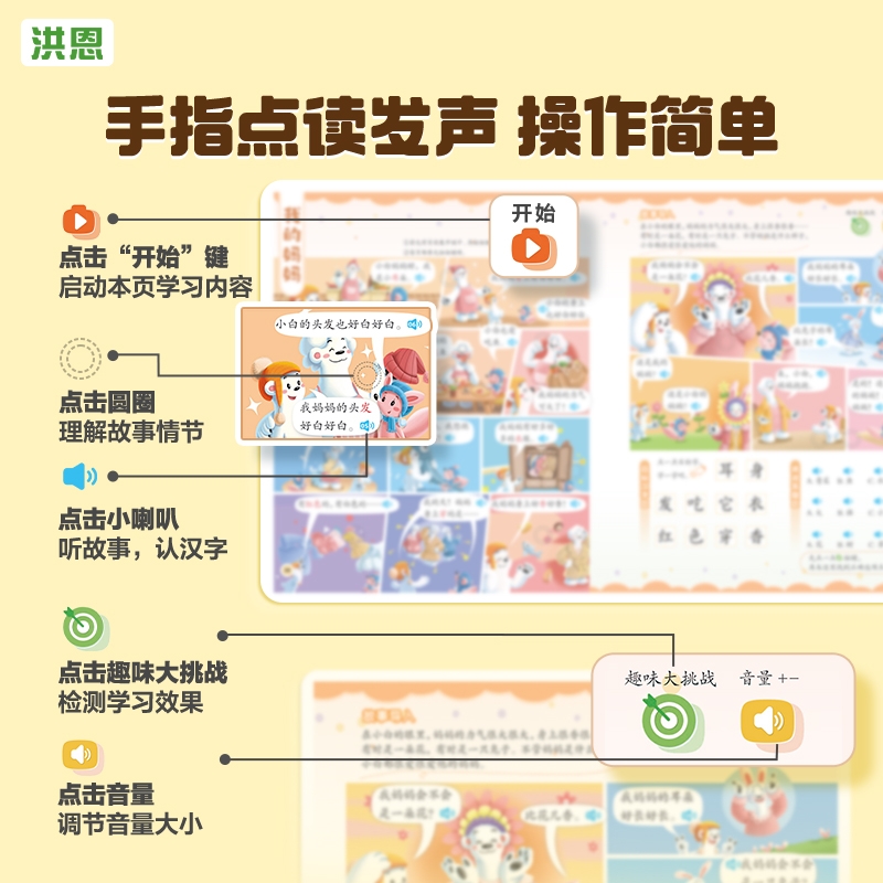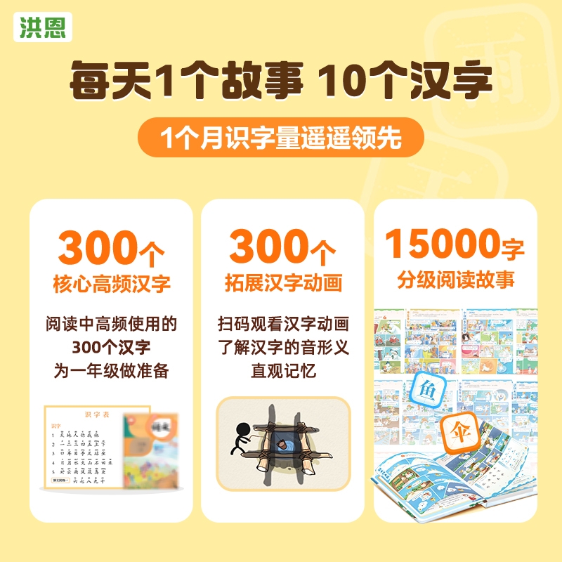 【抖音正版】洪恩识字点读书发声15000字分级阅读量认字识字书语文启蒙早教幼小衔接拼音拼读语数英儿童学习机发声早教机