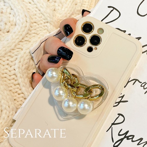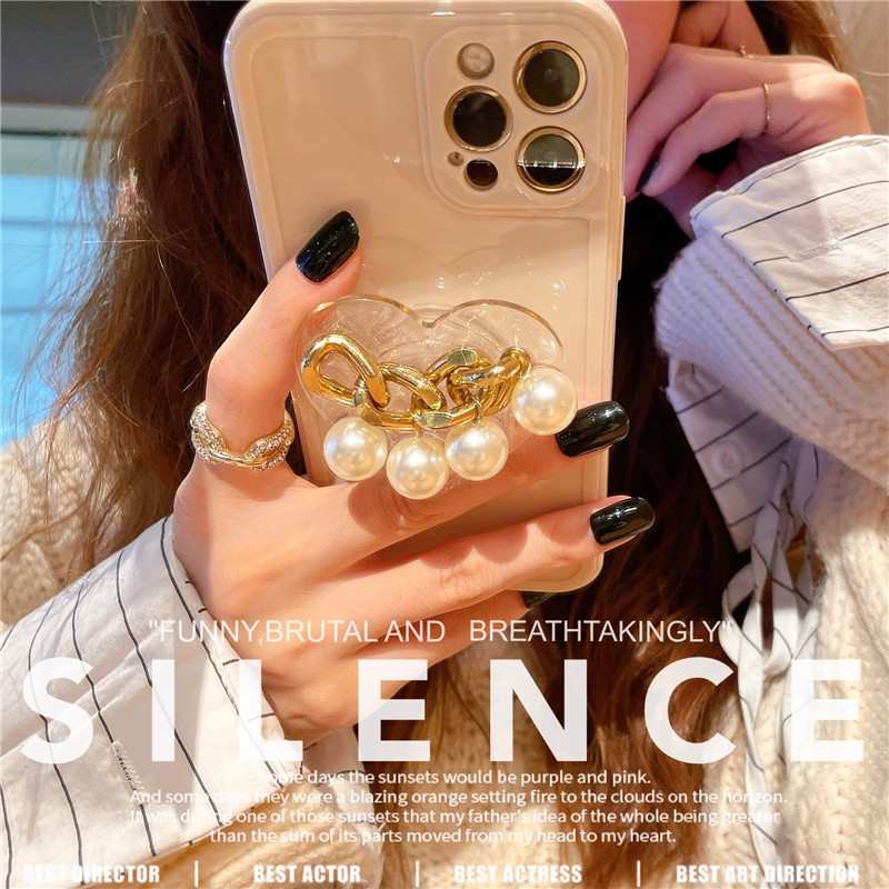 创意爱心透明金属链条珍珠手机气囊支架粘贴式ins高级感背贴桌面