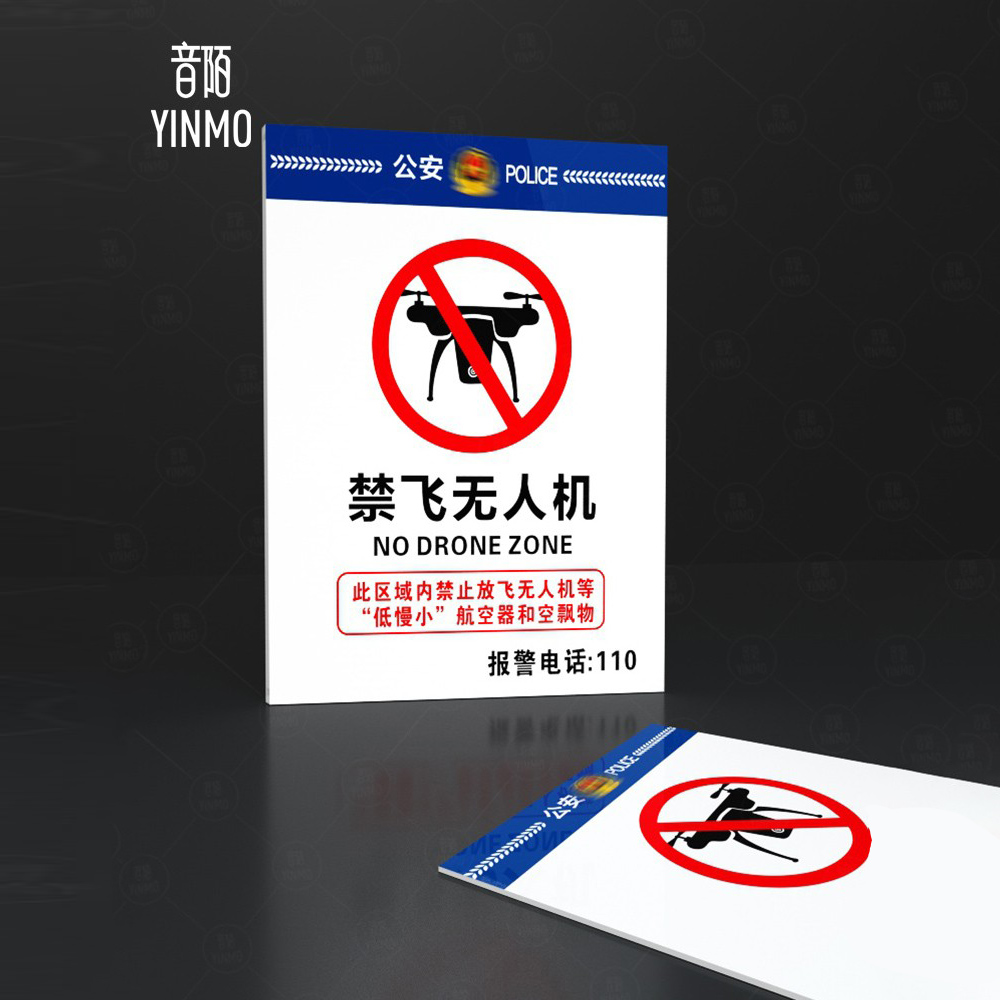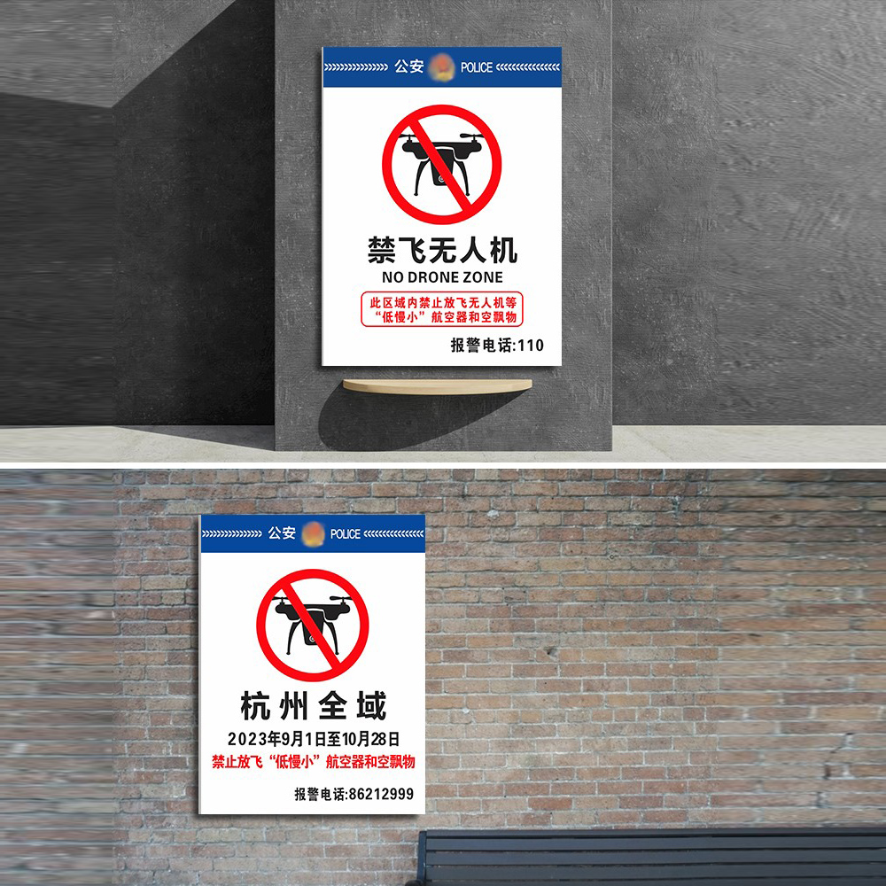 杭州禁飞无人机警示牌 杭州全域禁止放飞低慢小航空器和空飘物标识贴纸禁止飞行标牌标志 禁止无人机航拍警示