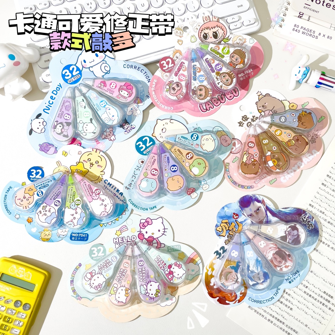四个装卡通修正带中小学生文具可爱迷你涂改带改错带少女心便携带