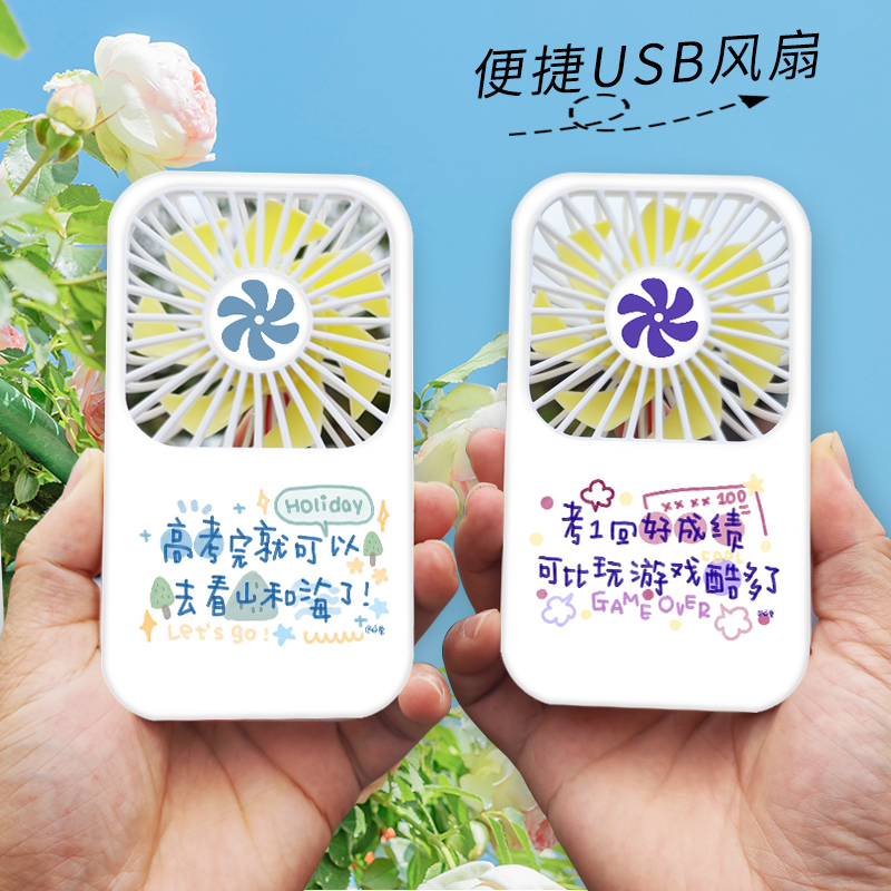 励志文字别让以后的自已后悔精美小风扇便携随身充电学生桌面宿舍静音迷你风扇来图定制公司LOGO文字迷你电扇