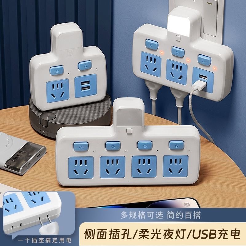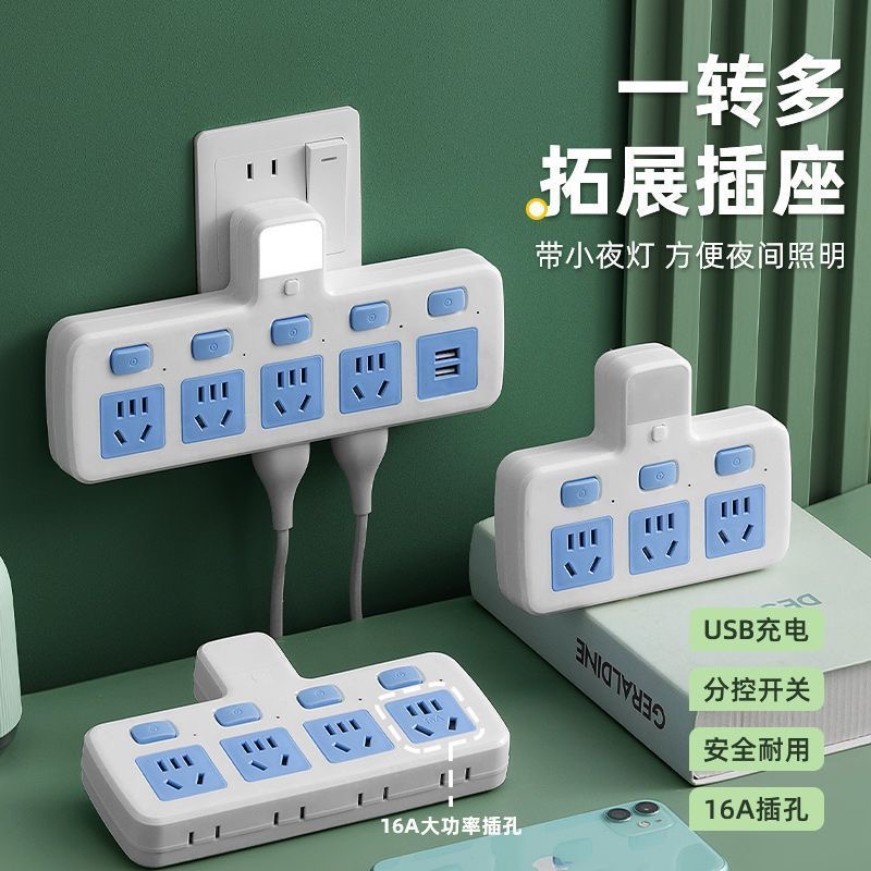 公午家用多功能一转变多插座转换器USB夜灯转换插头排插插线板