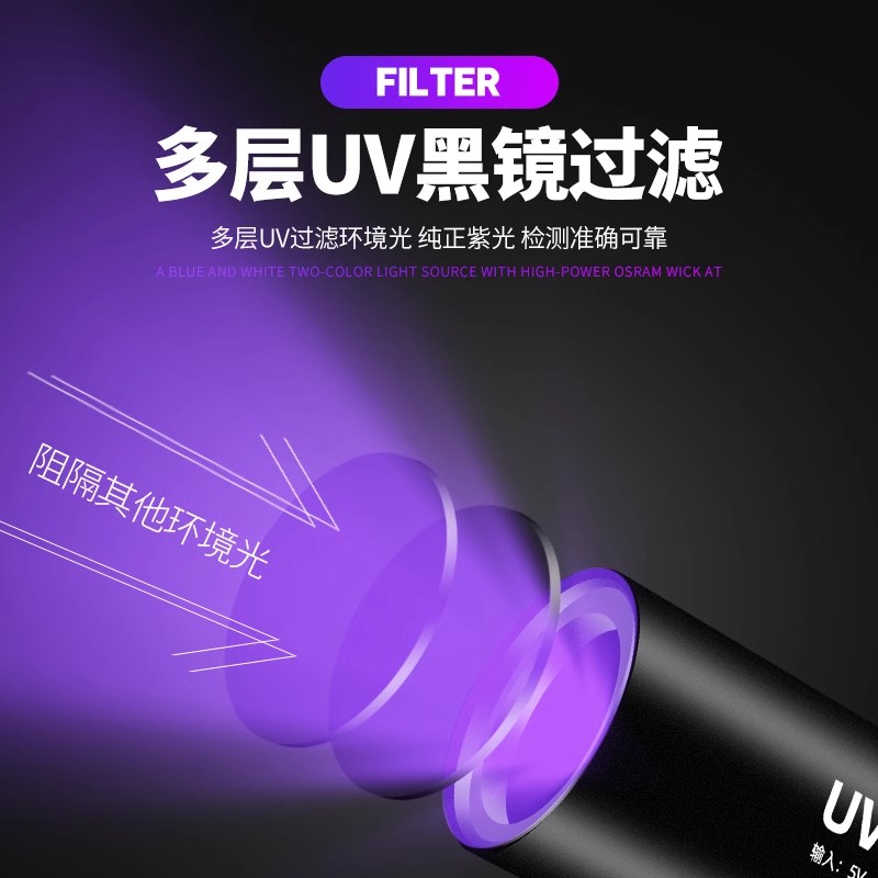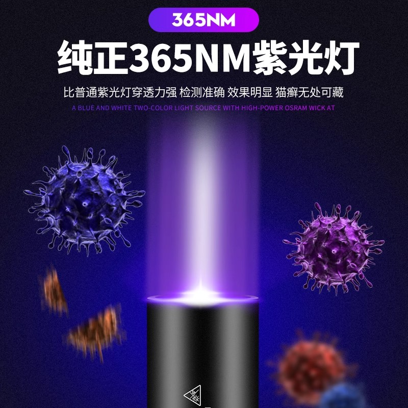 伍德氏灯紫外线灯手电筒照宠物真菌荧光剂检测猫藓uv黑镜固化猫癣