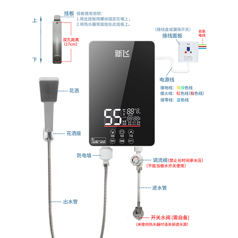 新飞即热式电热水器家用小型迷你出租房用恒温淋浴过水速热洗澡机