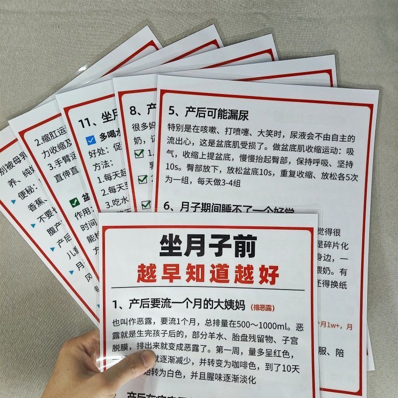 准妈妈产前必知知识点做月子越早知道越好A4防水塑封宝宝海报