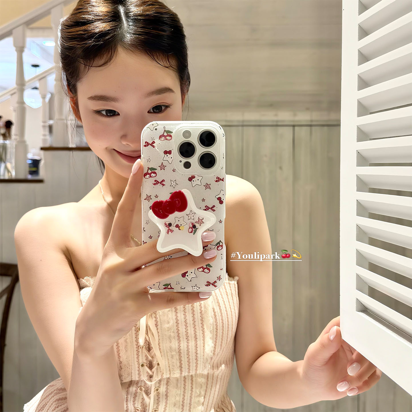 由里公园ins少女闪粉猫咪星星摇摇乐支架15适用16pro苹果16ProMax手机壳iPhone16全包14新款14Promax保护套韩