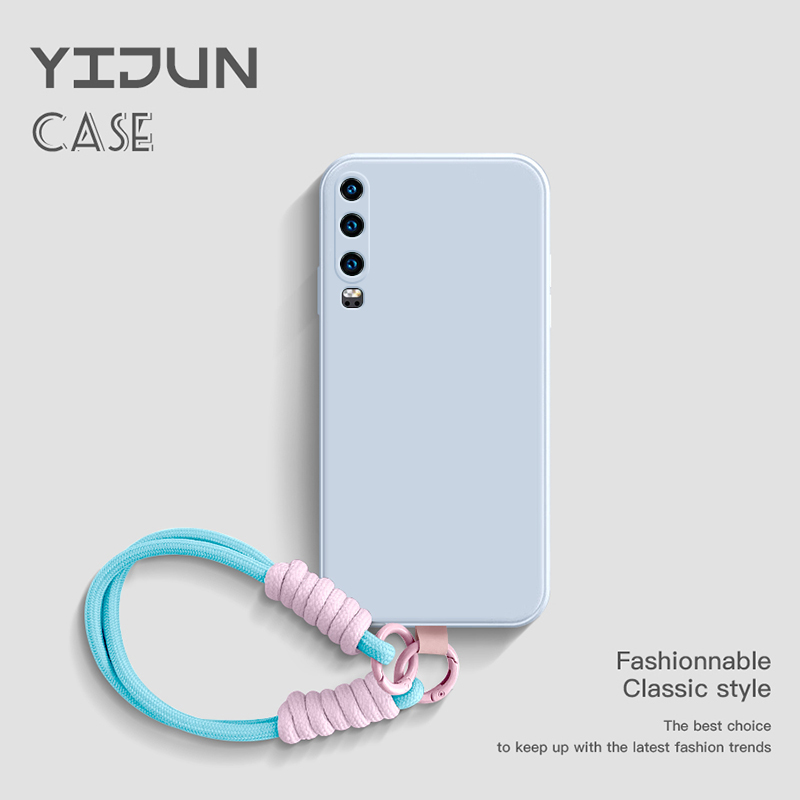 适用于华为P30手机壳液态硅胶HUAWEI新款P30Pro全包防摔编织挂绳樱花紫直边纯色30磨砂简约保护套男女超薄软