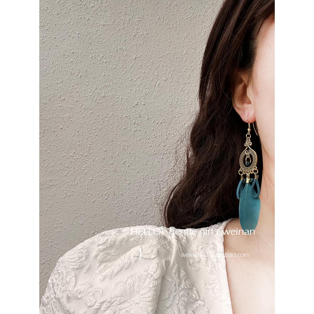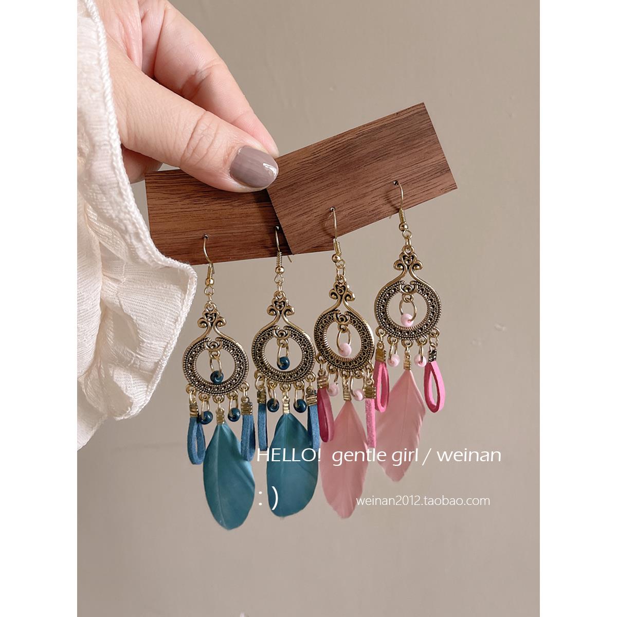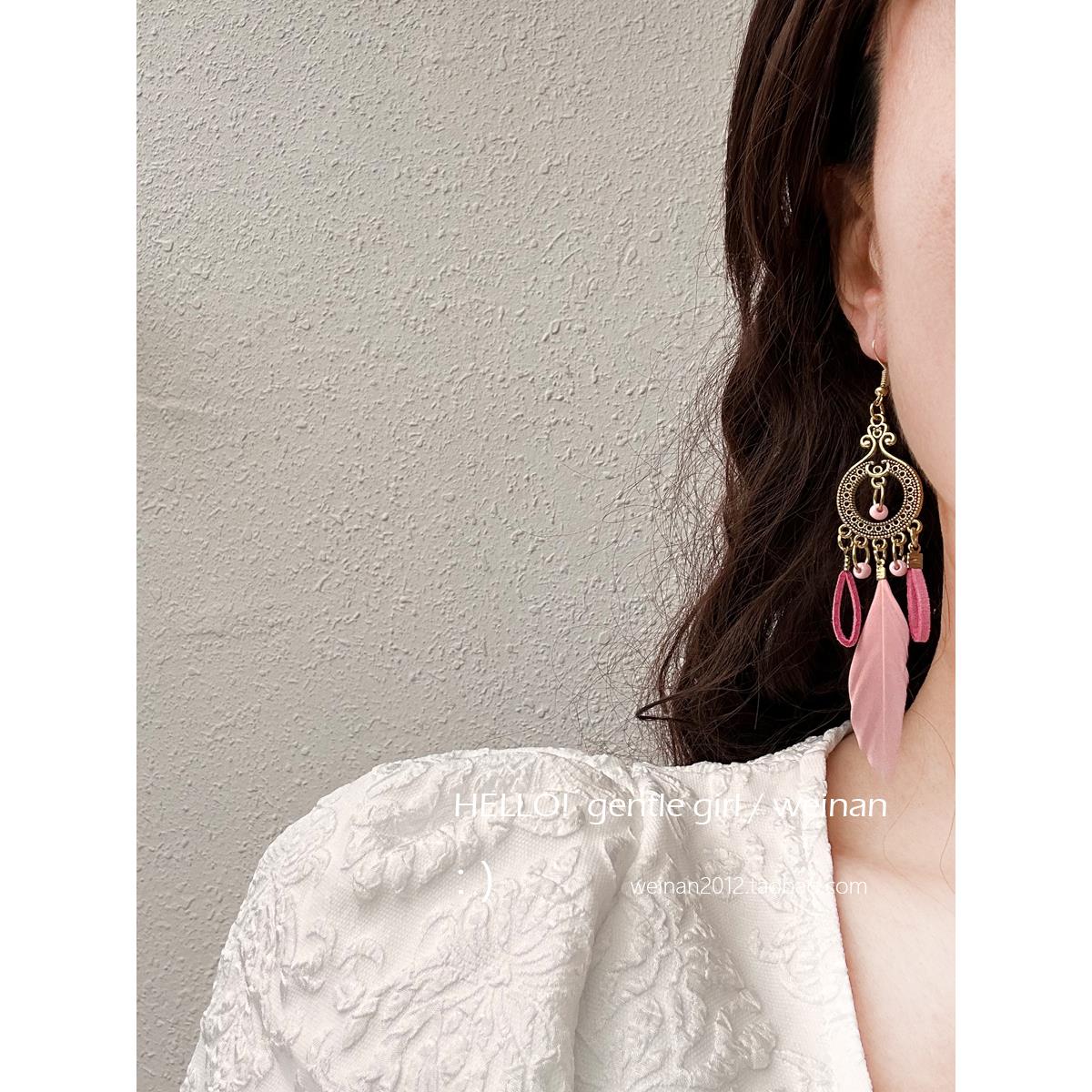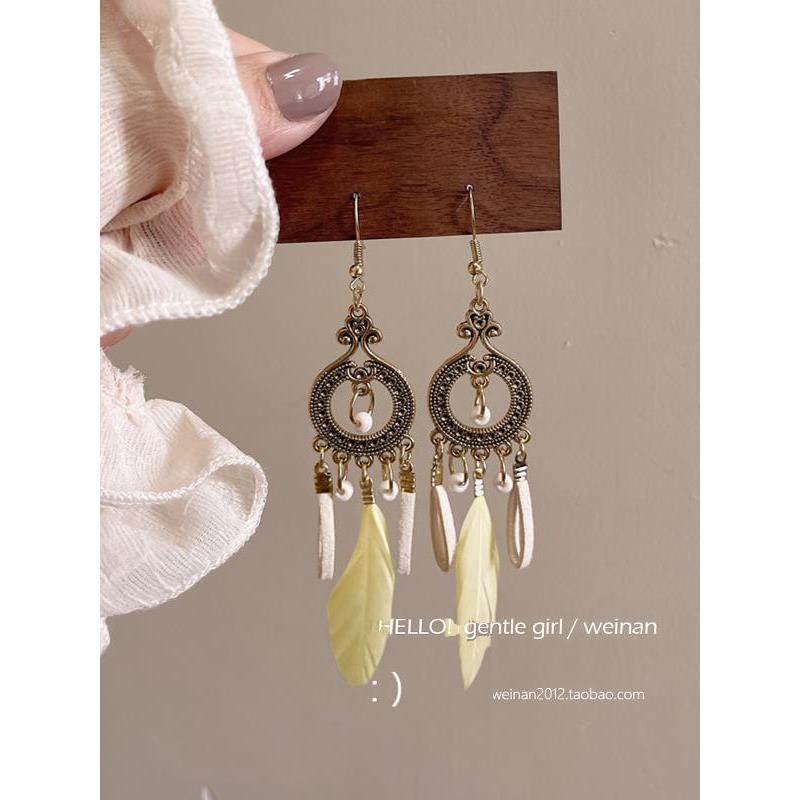 超仙流苏蚊香盘耳夹2025复古民族波西耳环坠出游拍照羽毛耳饰品女