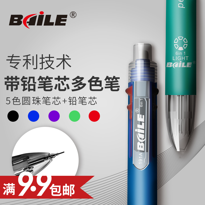 baile百乐5加1一笔多色手绘笔多功能圆珠笔五色原子笔带自动铅笔