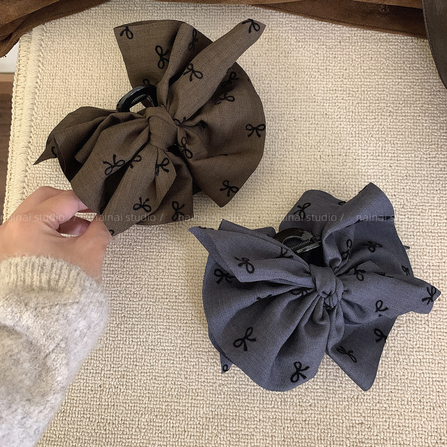 蝴蝶结抓夹~布艺大号格雷系灰色2025秋季新款后脑勺盘发鲨鱼夹女