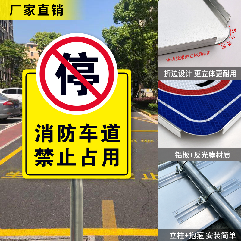 消防通道禁止停车占用警示牌立式反光指示标牌铝板安全交通标志牌车道严禁点停请勿通行停车警告标识定制
