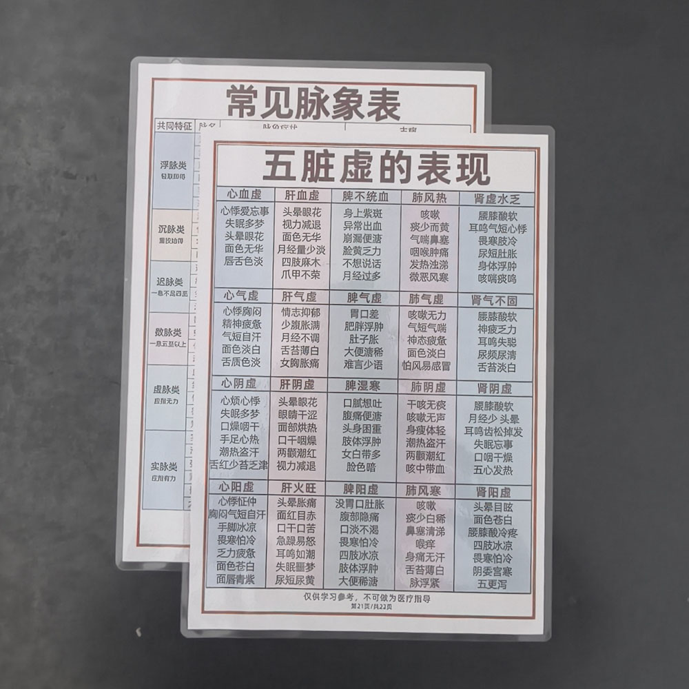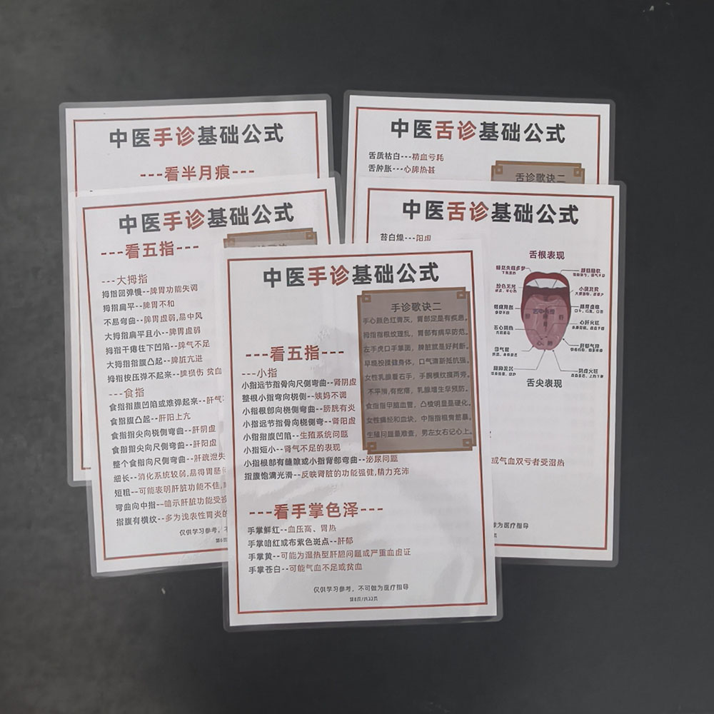 中医诊断公式手诊面诊脉象传统基础理论A4防水耐用塑封卡片舌诊口诀