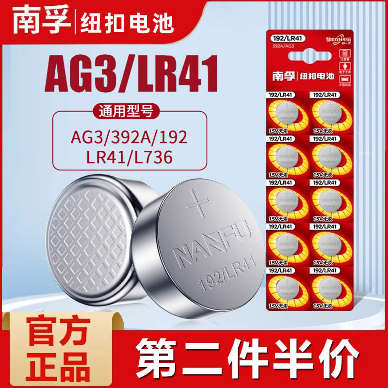 南孚LR41纽扣电池碱性AG3体温温度计192 392A L736发光耳勺灯测电笔钮扣电子手表欧姆龙儿童玩具圆形批发