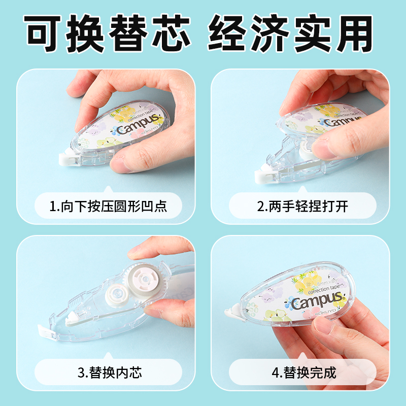 国誉kokuyo水彩絮语原纸色修正带campus创意清新可换替芯初中生学生用可爱简约高颜值涂改带文具女