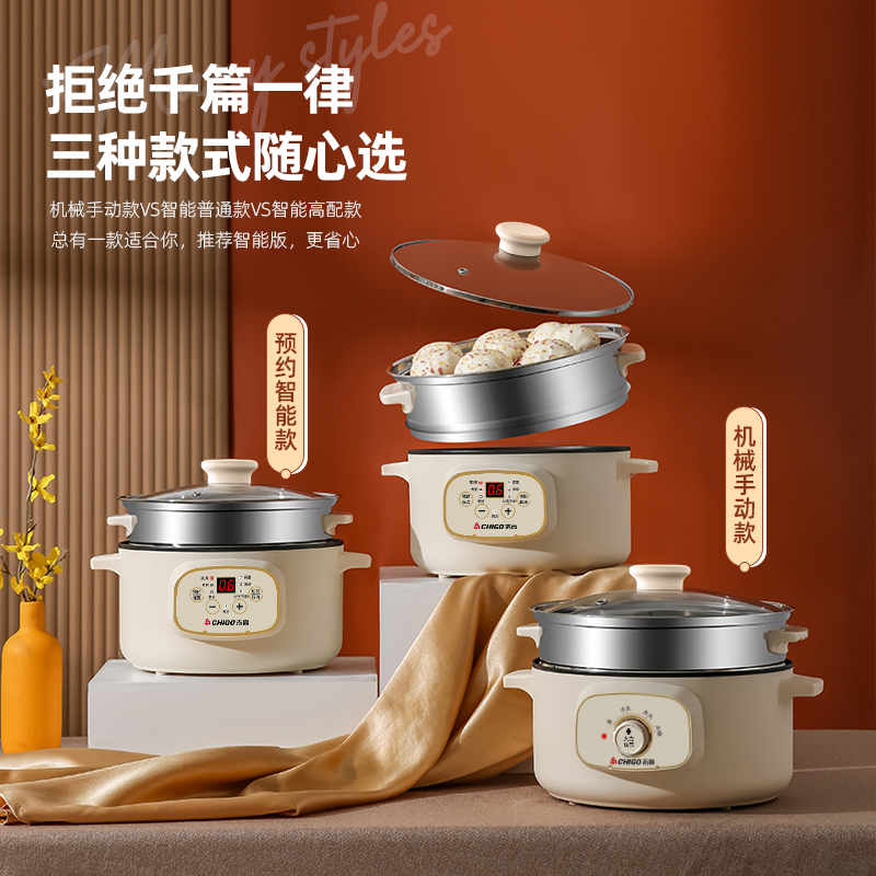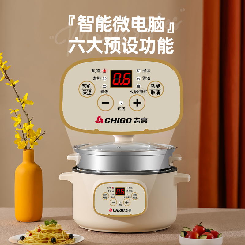 志高电煮锅多功能家用学生小电锅电炒蒸煮一体锅电热火锅不锈钢