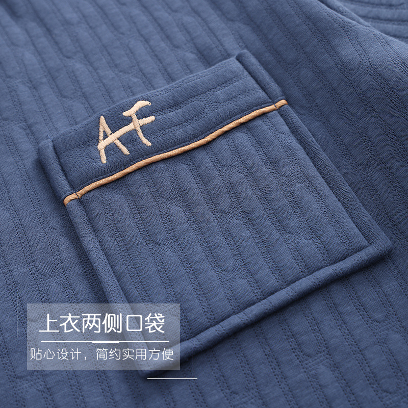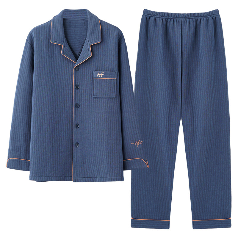 睡衣男士春秋加厚纯棉长袖秋冬薄款冬季夹棉空气棉家居服中老年