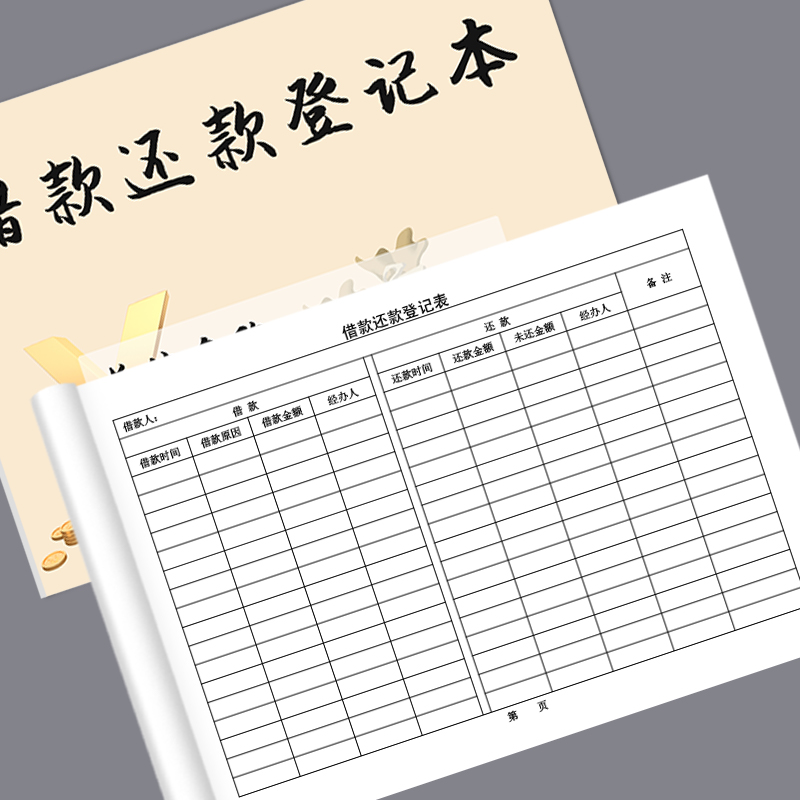借款还款登记表客户工人员工每月预支借钱还钱备忘财务记录本记账本借款偿还记录笔记本欠条借条登记本