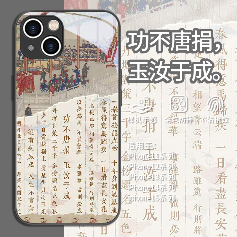 适用苹果16promax手机壳考试必过iPhone15plus功不唐捐14pro玉汝于成13mini考研12promax高考11玻璃xsmax套xr