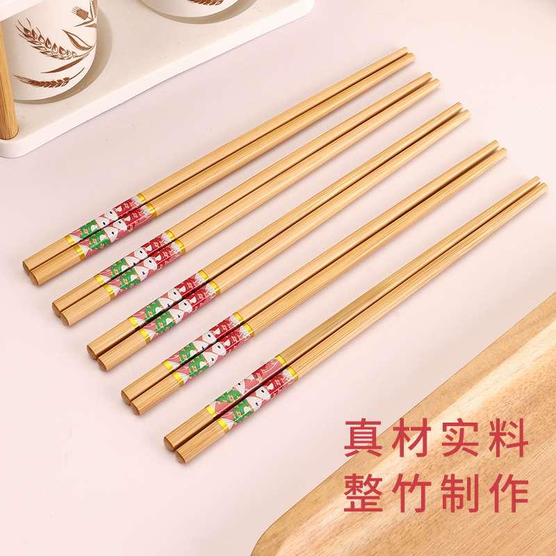 深山老楠竹 年年有余家用纯竹筷天然碳化抗菌防霉可爱长 竹木筷子