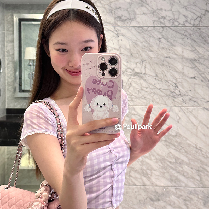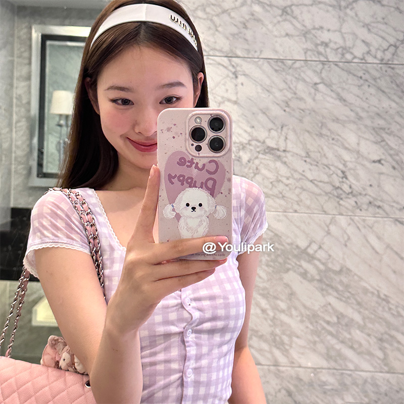 由里公园ins可爱粉色泼墨爱心小狗15适用16pro苹果16ProMax手机壳iPhone16全包12新款14Promax防摔保护套13女