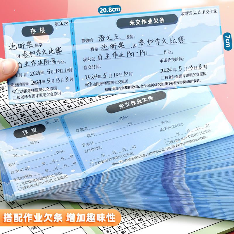 班级作业检查记录本班级交作业情况登记加厚创意小学初中未交作业欠条教师管理记录课堂家庭作业批改跟踪记录