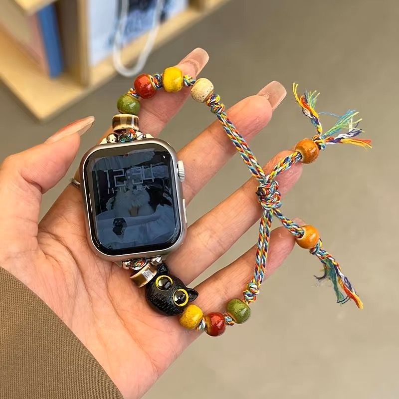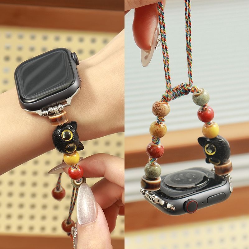 哈基米适用苹果手表Applewatch个性iwatch小猫狗手绳表带中式串珠首饰国风可爱40mm个性41mm42原创S1098765代