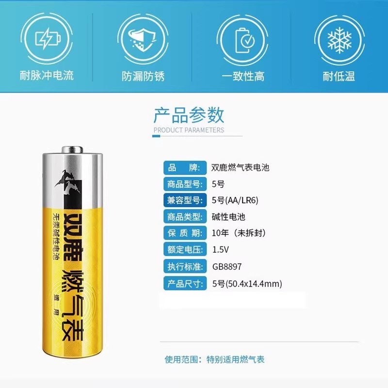 双鹿燃气表电池煤气表5号电池天然气表水表LR6AA高能电池1.5V天然气表5号电池五号钢壳耐用天燃气表电池