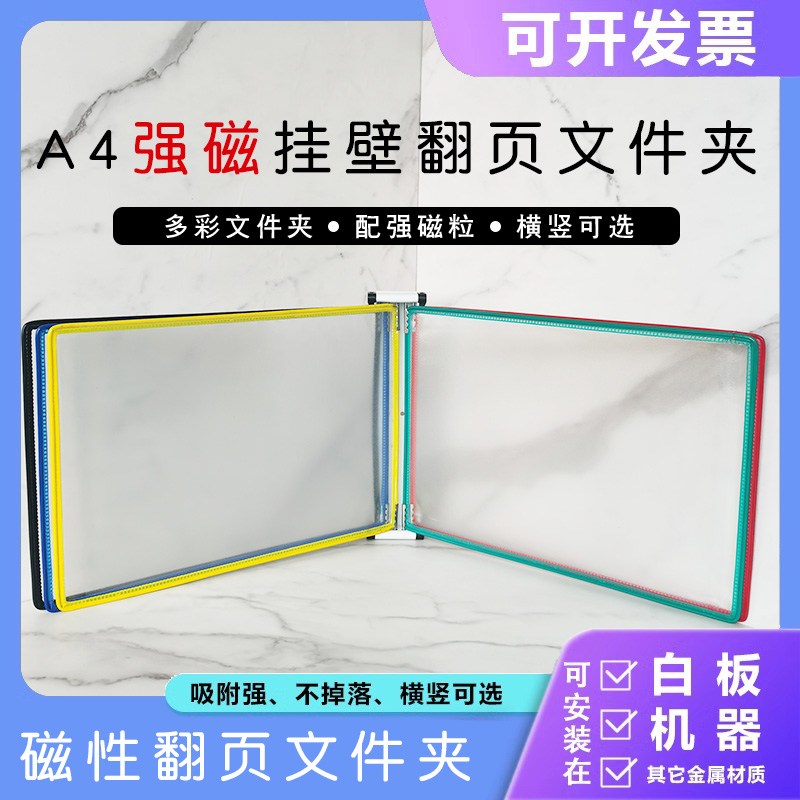 A4壁挂展示文件夹5页10面强磁吸附壁挂翻页资料文件夹横竖展示架作业指导书广告宣传车间机床操作壁挂文件夹