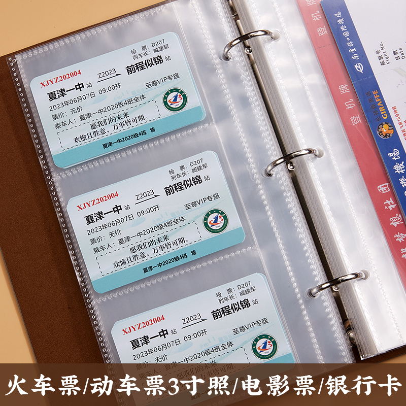 票据收集册活页镭射票收纳册票根收藏册明信片收纳本电影票火车票高铁票演唱会门票旅行纪念相册机票夹内页册