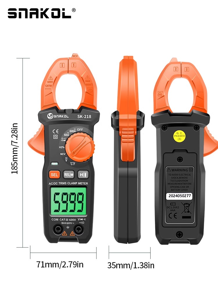 斯耐科交直流电流600A钳形表SK-218多功能钳表电工智能防烧交直流