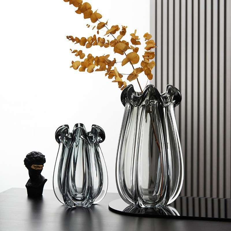 创意花朵造型厚重琉璃花瓶摆件客厅插花北欧波浪口样板间水养花器
