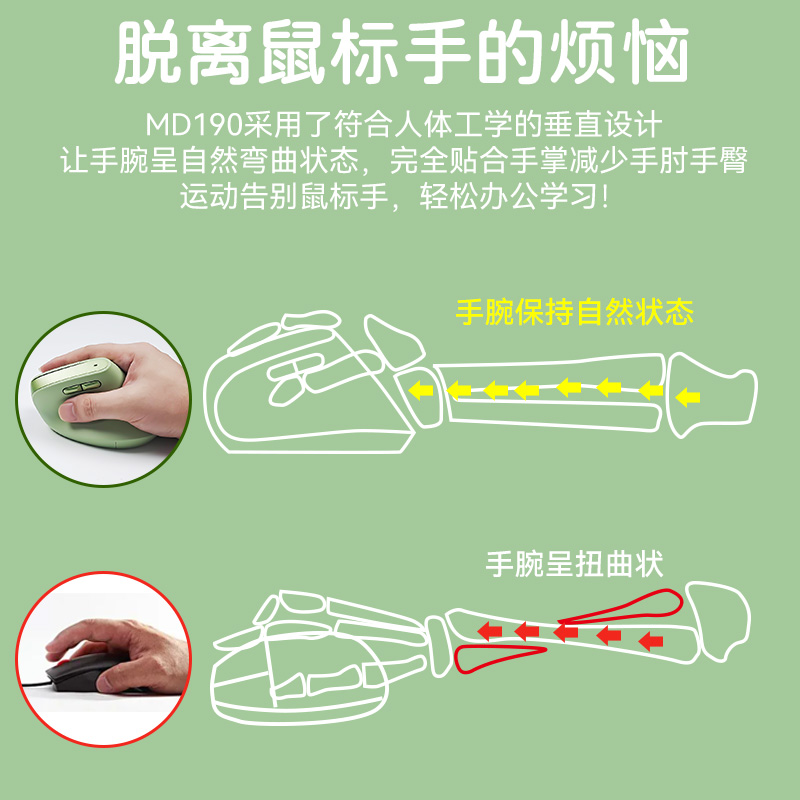 BOW 充电双模人体工学垂直鼠标无线蓝牙笔记本静音男女生立式通用