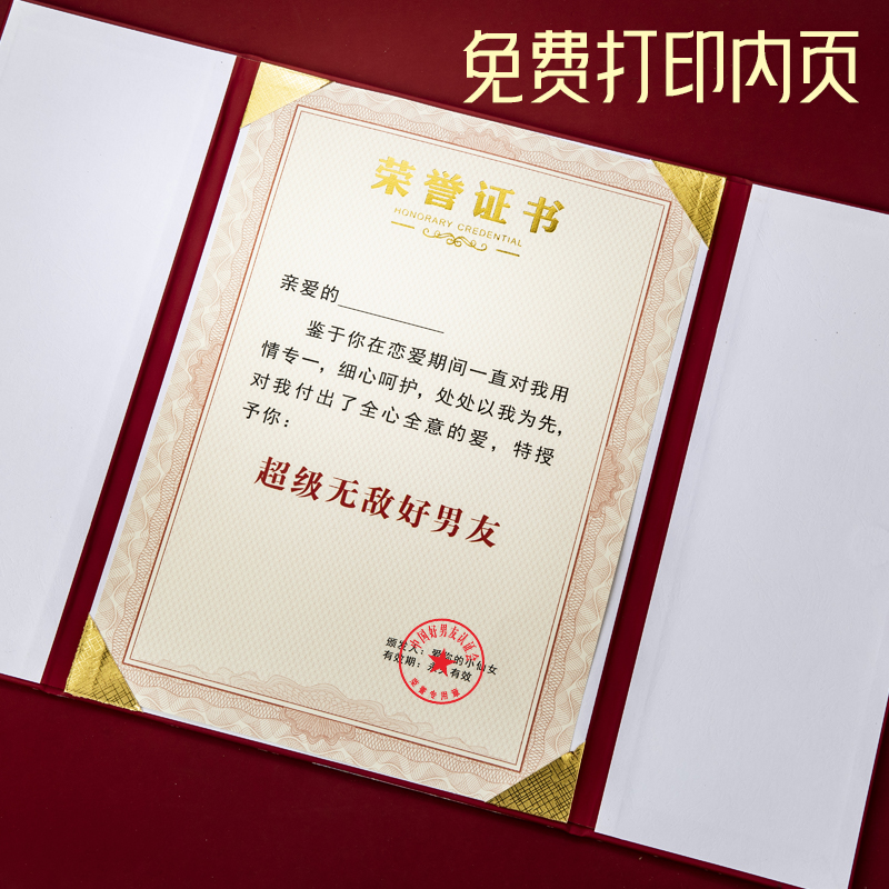 皮面荣誉证件书定制烫金国潮风聘书a4荣誉证书8k封面内页免费打印