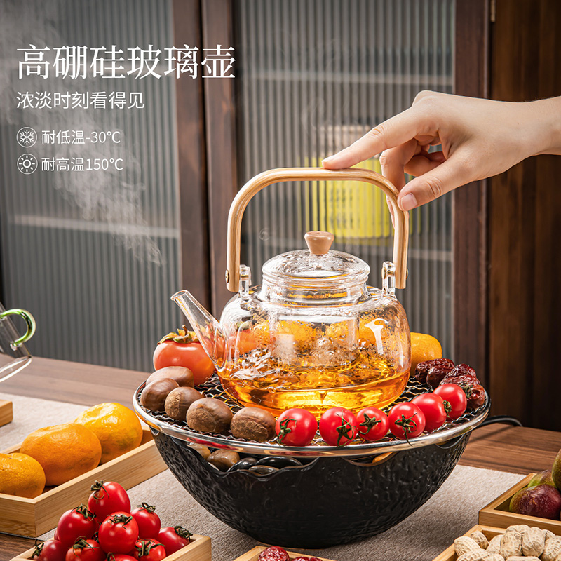 围炉煮茶室内家用网红全套电陶炉煮茶花茶茶具套装玻璃茶壶煮茶器