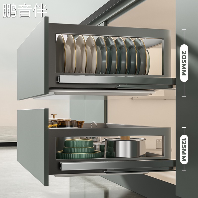 鹏音伴四季沐歌拉篮厨房橱柜304不锈钢双层抽屉式碗架收纳碟架橱柜碗篮摆件饰品
