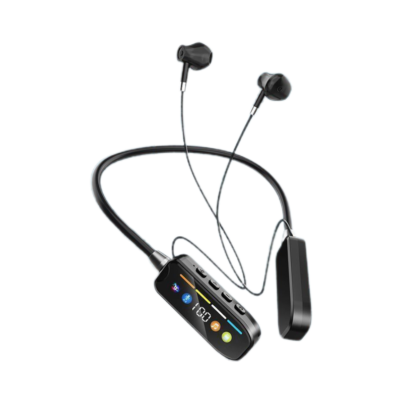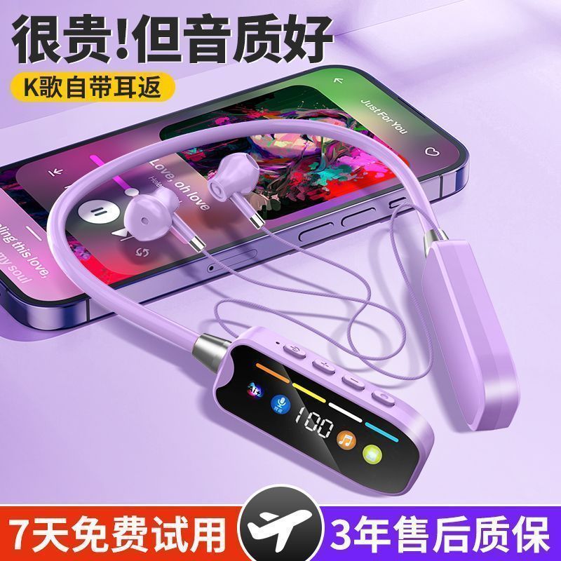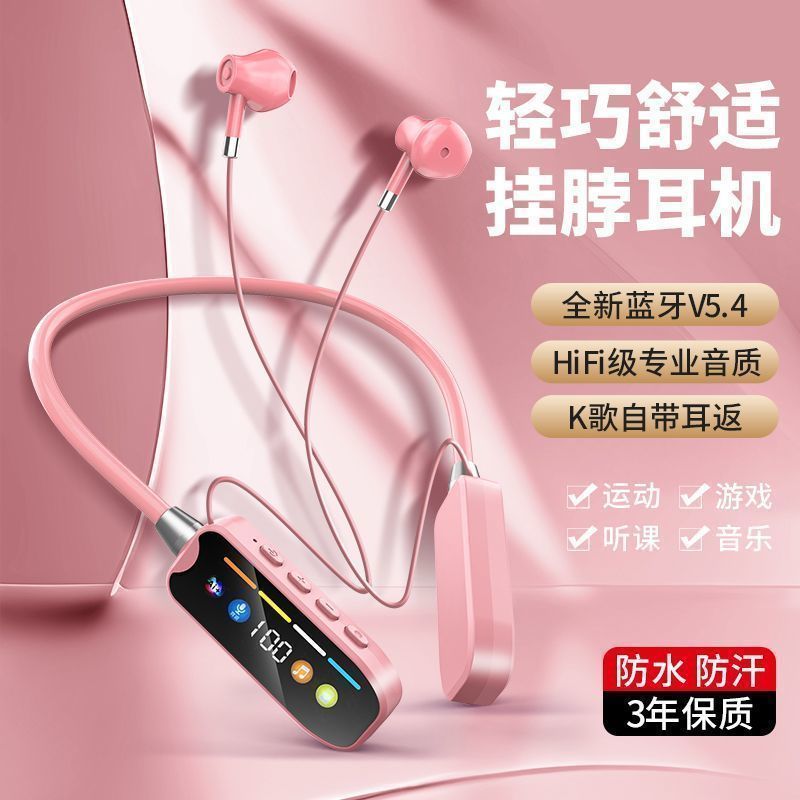 25新款无线蓝牙耳机K歌耳返运动挂脖式长续航可插卡全镜数显男女