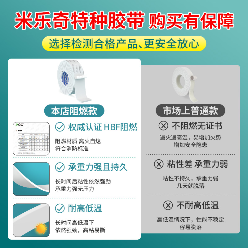 加厚双面胶高粘度泡沫泡棉强力海绵胶贴厚款阻燃耐高温强力车用防水超粘墙面固定相框挂画神器免打孔工业胶带