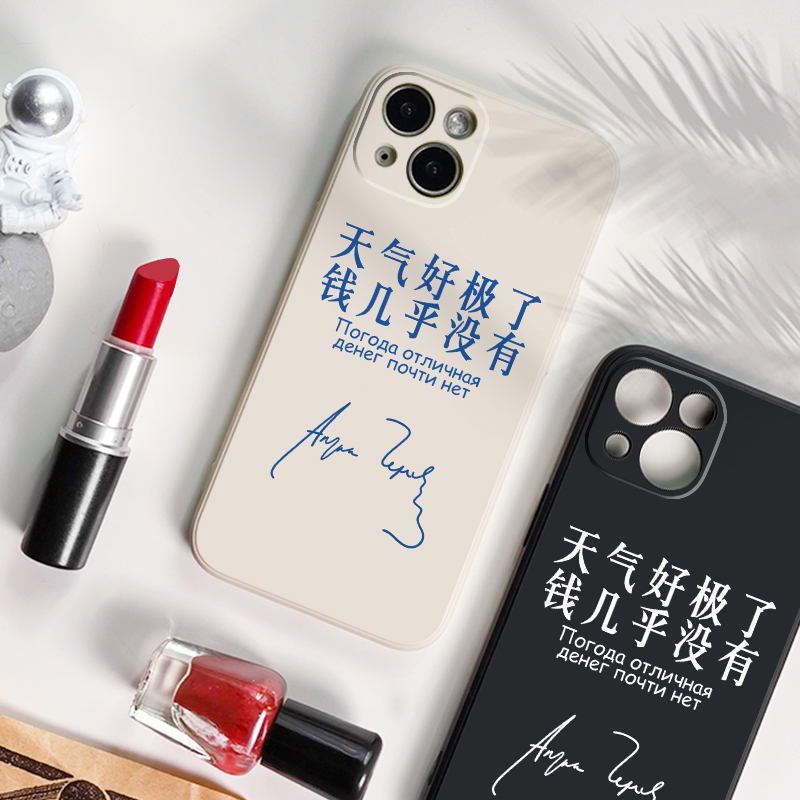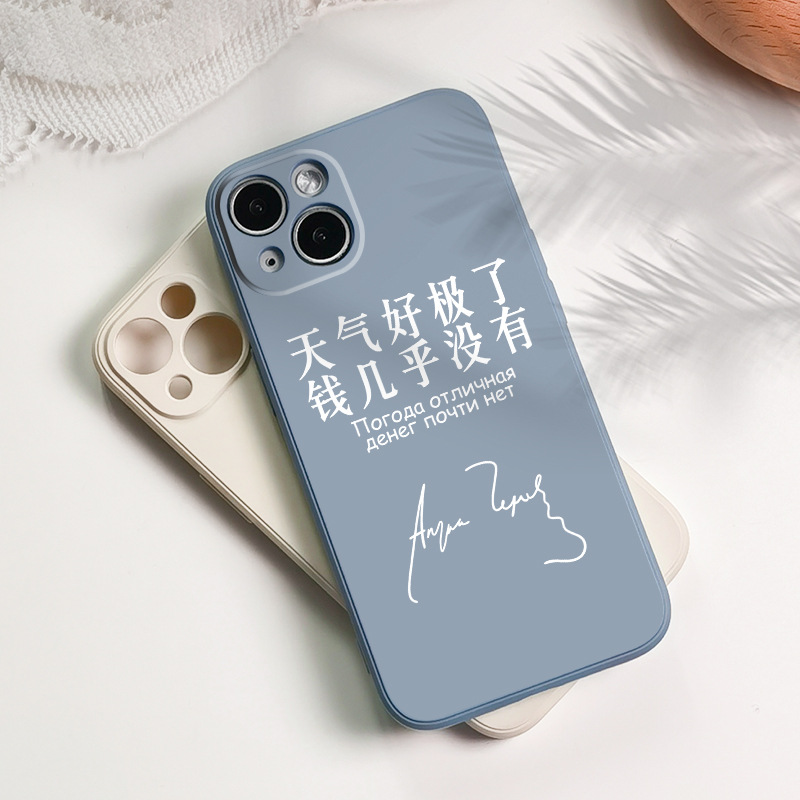 天气好极了钱几乎没有15手机壳适用14苹果13硅胶11Promax全包12文字iPhone新款xr/xs/x契诃夫7p/8plus个性se2