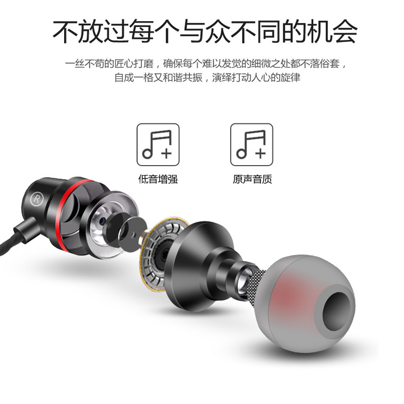 红蓝圈通用入耳耳机金属重低音安卓线控调音带麦耳塞有线耳机批发