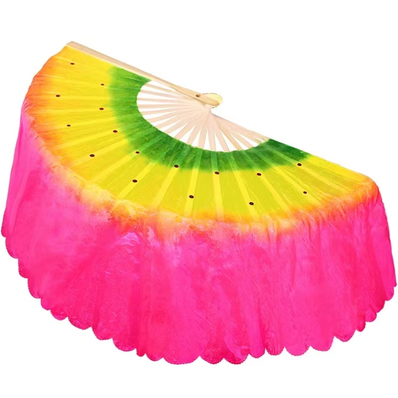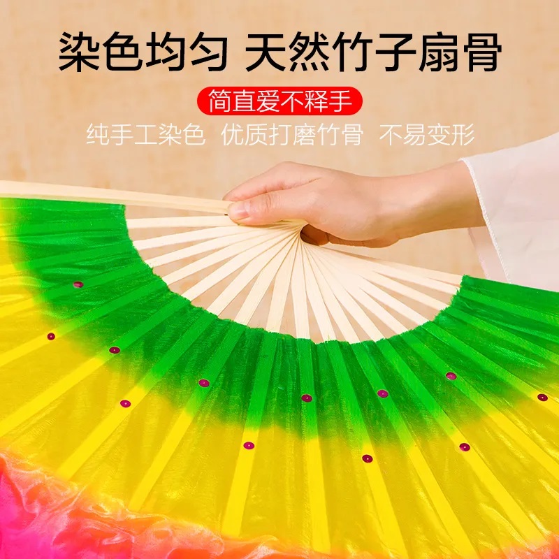 广场舞蹈扇子双面三色跳舞扇秧歌扇左右手一对健身娱乐表演舞扇子