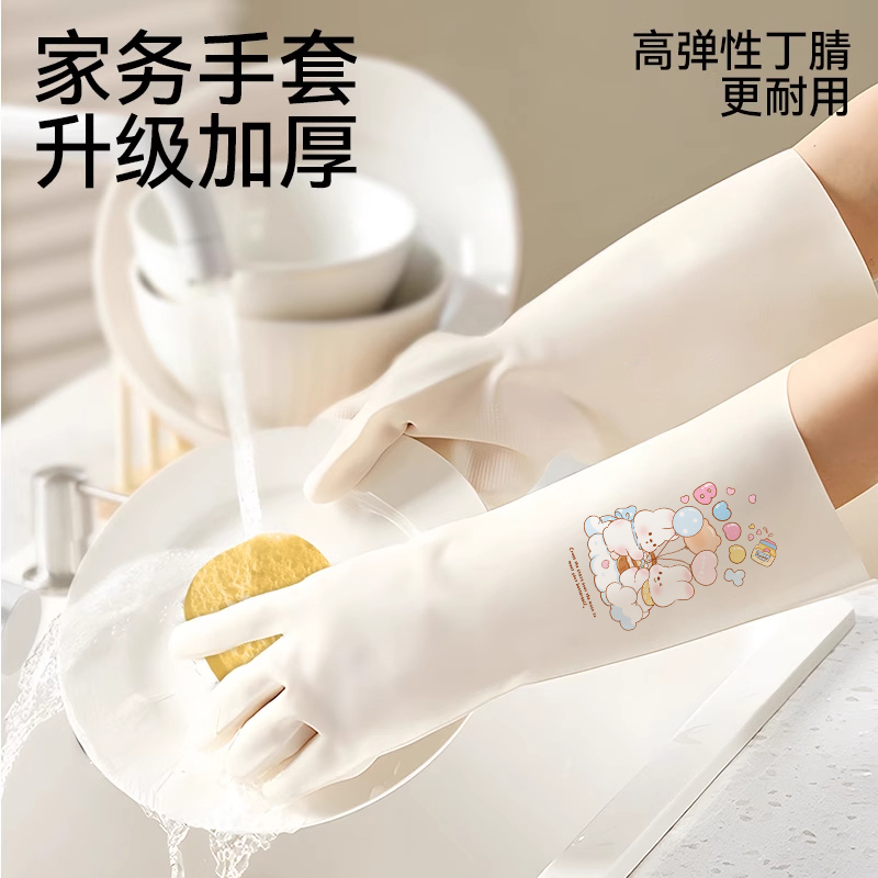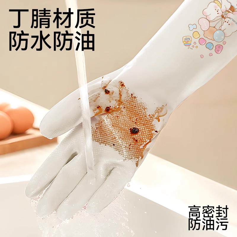 丁腈手套女家务洗碗厨房耐用清洁加厚橡胶胶皮防水加长洗衣服刷碗