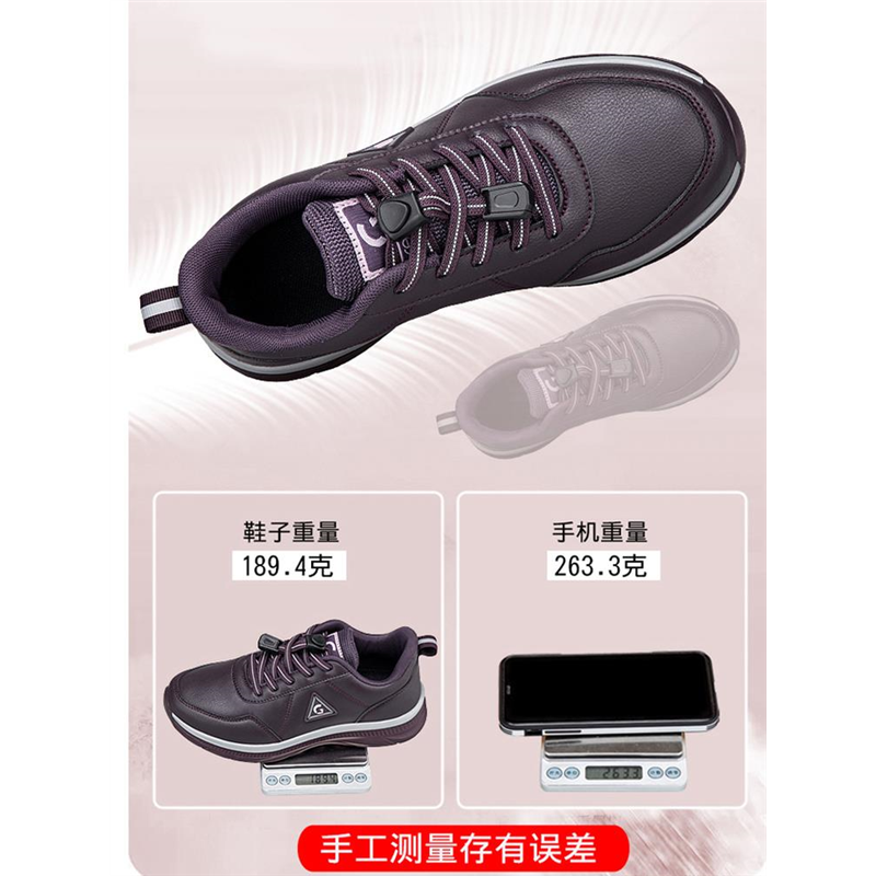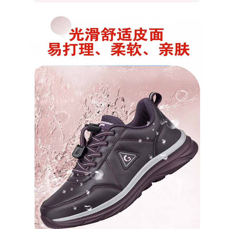 寿足力老人健步鞋春秋款皮面防水中老年人运动鞋女款舒适软底防滑
