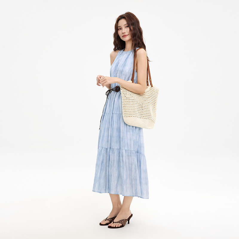 记忆的起点挂脖连衣裙气质甜美法式无袖裙2025夏季新款69AX8036Z